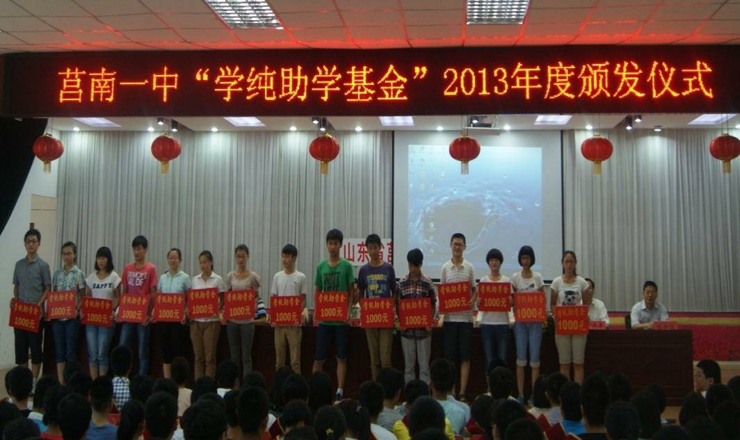 “学纯奖助学基金”由董事长李学纯个人出资200万元于2007年创立,主要用于资助家庭贫困、品学兼优的莒南一中在校学生和高考成绩优异的毕业生。自2007年设立以来,迄今已有1068名学生受到奖助,本次又有192名学生受到奖助。“学纯奖助学金”已经成为莒南县社会公益事业中的一大品牌,以其强烈的感染力和影响力,对倡导崇文重教、捐资助学的社会风尚起到了表率作用。
