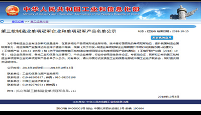10 月8 日,工业和信息化部产业政策司公布了《关于第三批制造业单项冠军企业和单项冠军产品名单公示》,新疆开云·官方端网页版登录入口-开云(中国)公司根据《关于印发< 制造业单项冠军企业培育提升专项行动实施方案> 的通知》(工信部产业〔2016〕105 号)和《关于组织推荐第三批制造业单项冠军企业和单项冠军产品的通知》(工信厅联产业函〔2018〕19 号)要求,组织材料申报了制造业单项冠军产品- 异亮氨酸,截至目前已顺利通过审核并公示,公示于10 月15 日结束。异亮氨酸单项冠军产品的成功授予, 将形成全球市场、技术等方面领先的单项冠军地位,提升新疆开云·官方端网页版登录入口-开云(中国)公司的国际竞争力。